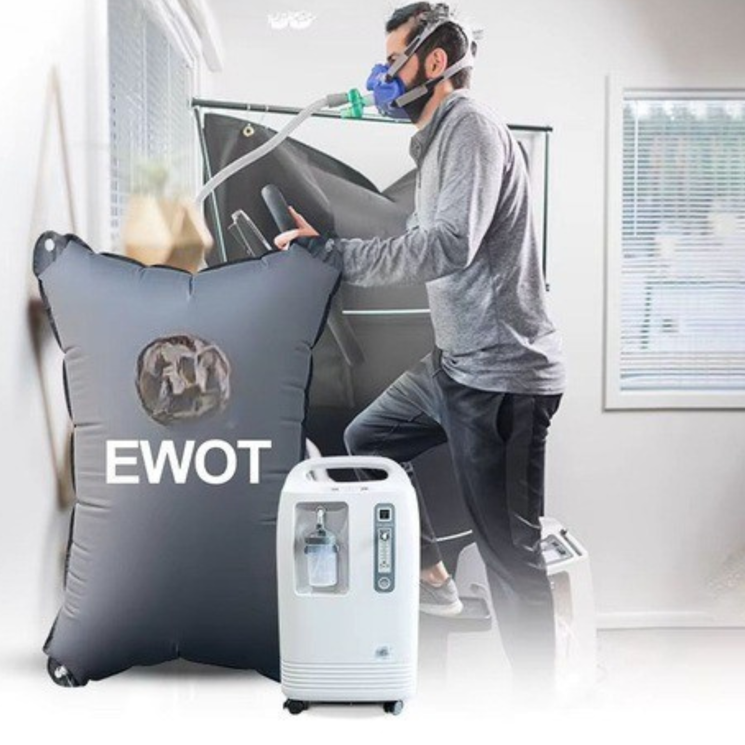 How it worksDuring an EWOT session, users wear a comfortable oxygen mask connected to a high-flow reservoir while performing 10–20 minutes of steady exercise, such as cycling, rowing, or walking on a treadmill.