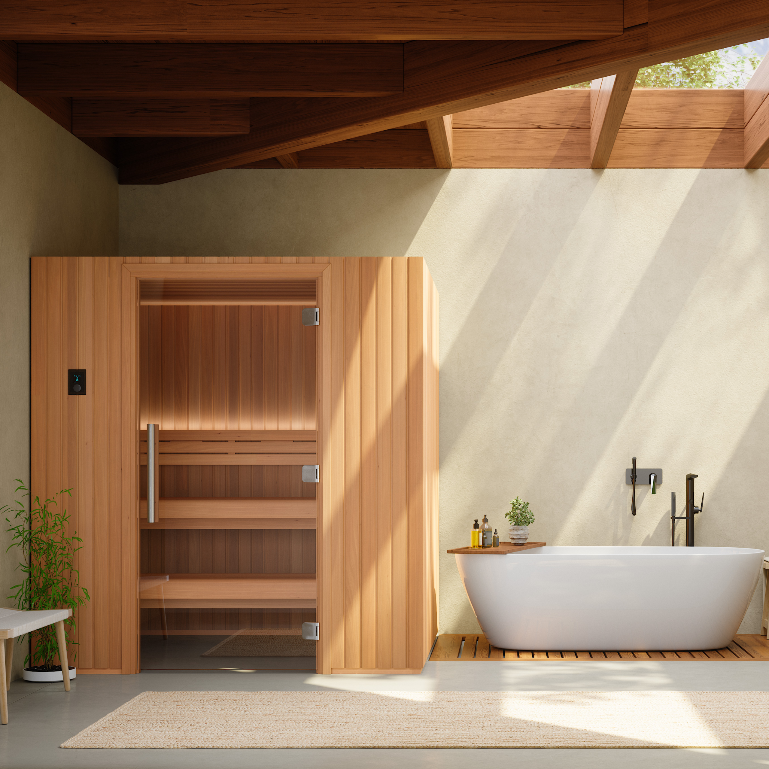 With a choice of wood finishes, glass options, and accessories, the Essential Collection delivers the purity of sauna tradition with a refined, contemporary edge.