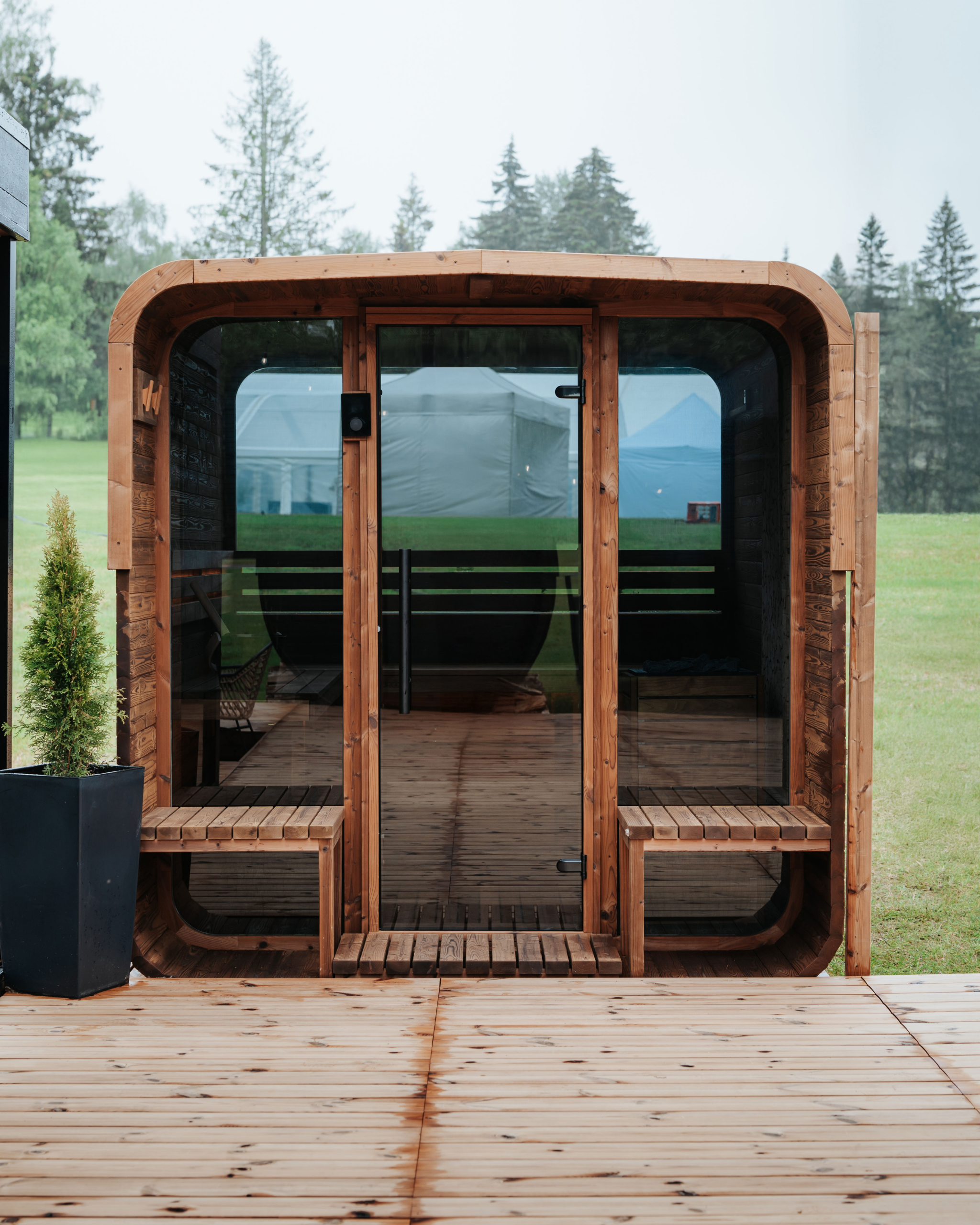 A compact sauna crafted from thermo-aspen, offering full wellness benefits in any space. Choose Cala or Cala Mini for the same quality in smaller dimensions.