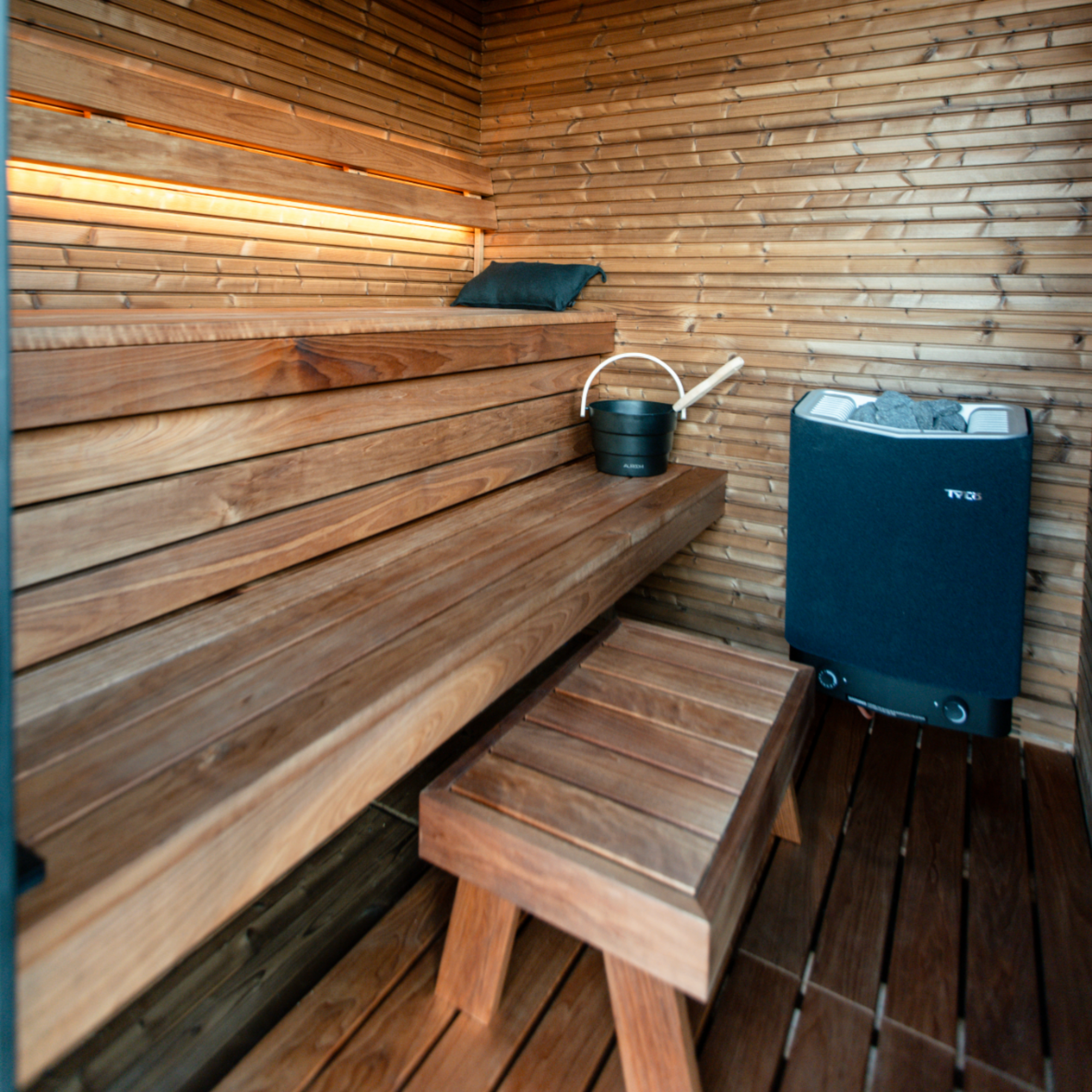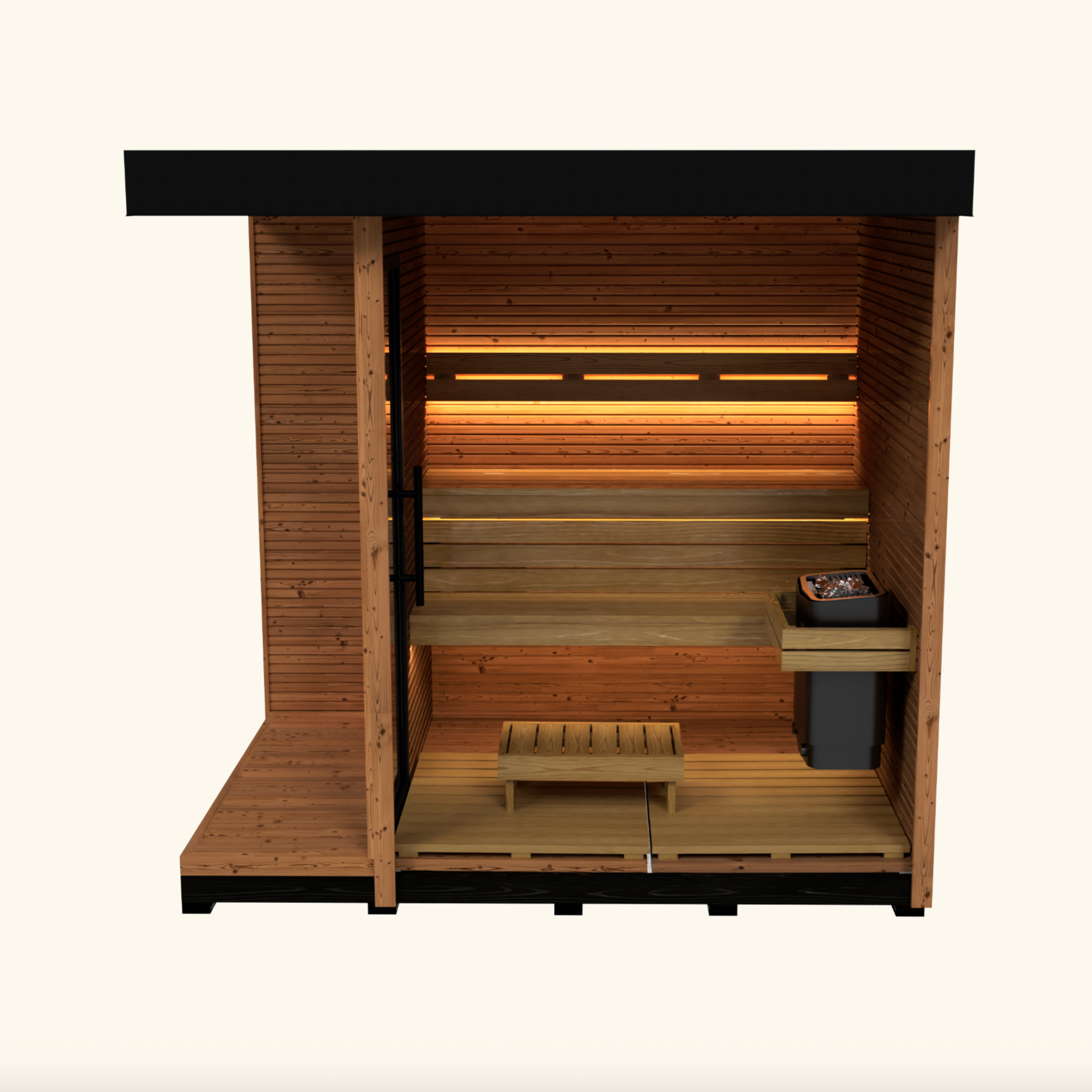 Sometimes simpler is better, and Mira’s minimal, space-saving design has everything you need for a calming, enjoyable outdoor sauna without overcomplicating things.