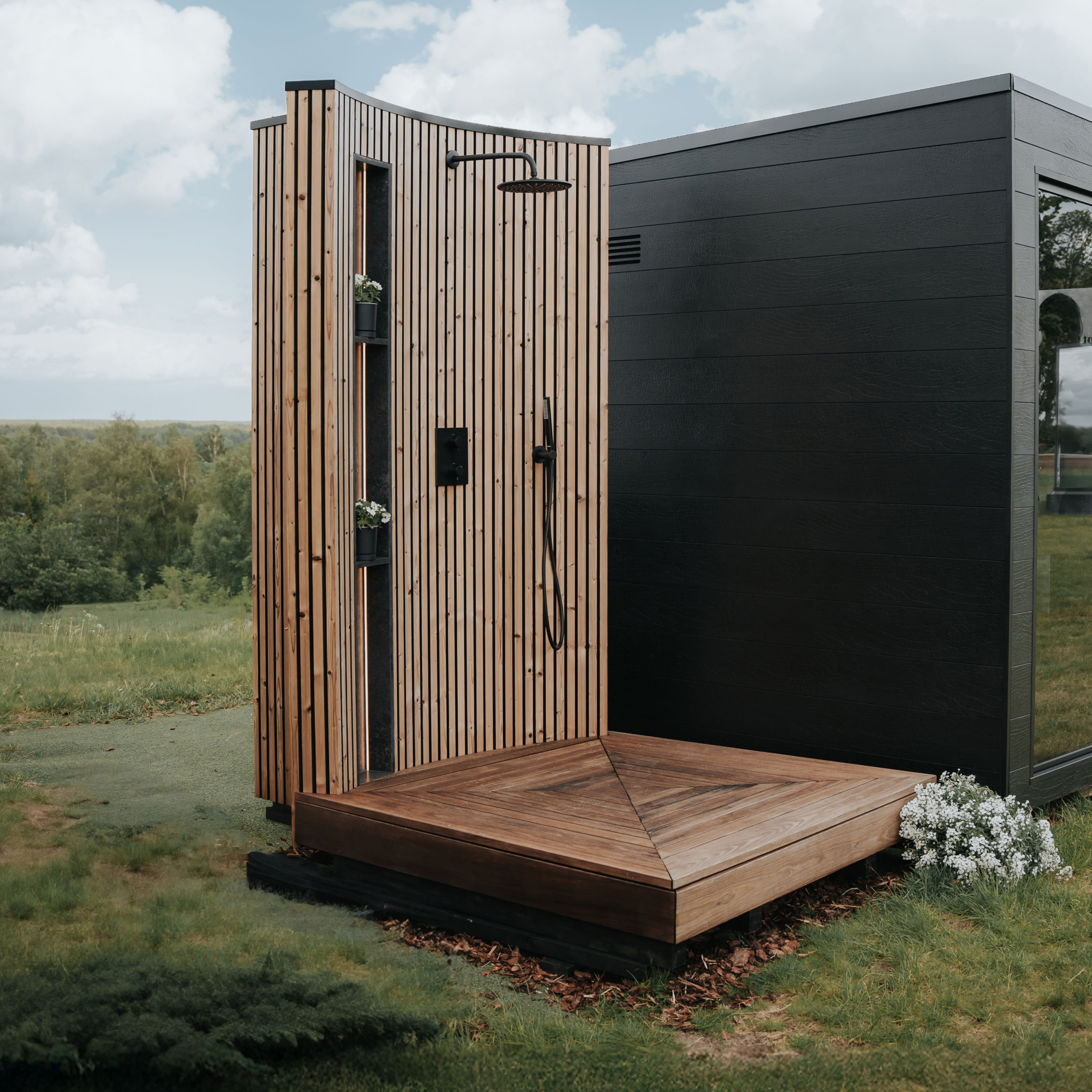 Terra is a modern outdoor sauna available in two sizes, from a pure heat cabin to a larger space with room to relax. With natural or black cladding and refined interior finishes, it creates a tailored wellness haven in your garden.